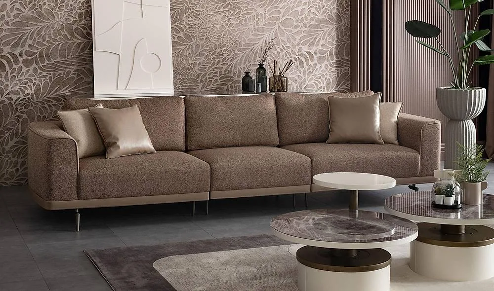 طقم بيرلا يأتي بتصميم مودرن مستوحى من خطوط البساطة الأوروبية التي تمنح المساحة اتساعًا وأناقة راقية. يتميز الإنتريه بلونه البني الدافئ الذي يتماشى مع أغلب أنماط الديكور، مع قماش كتان عالي الجودة يمنحك ملمسًا ناعمًا ومظهرًا راقيًا.