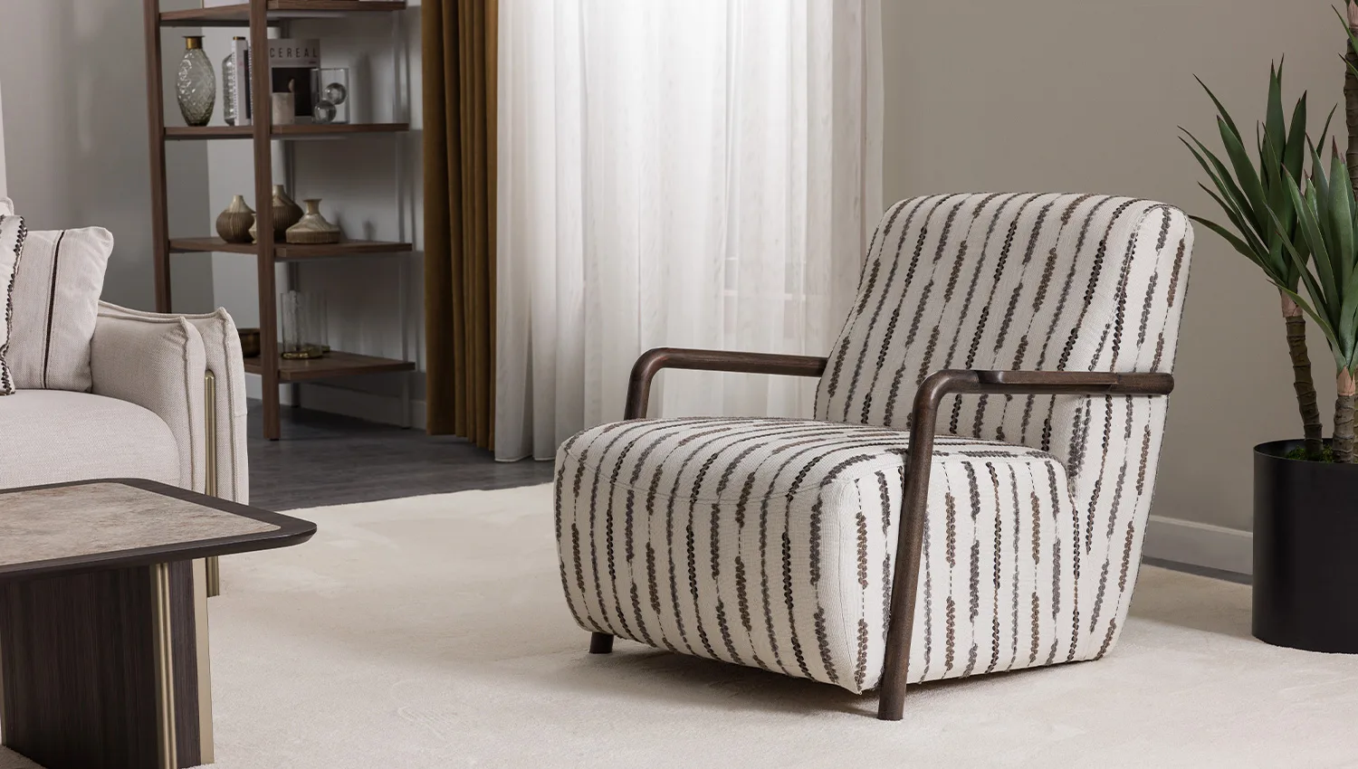 عدد 1 فوتيه بمسند يد وأرجل خشبية تضيف لمسة فنية راقية