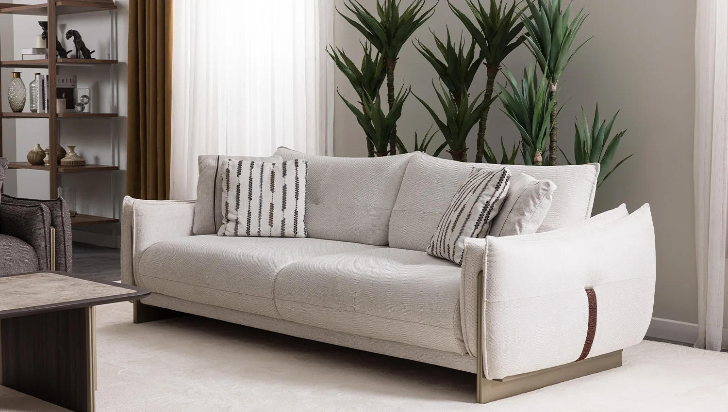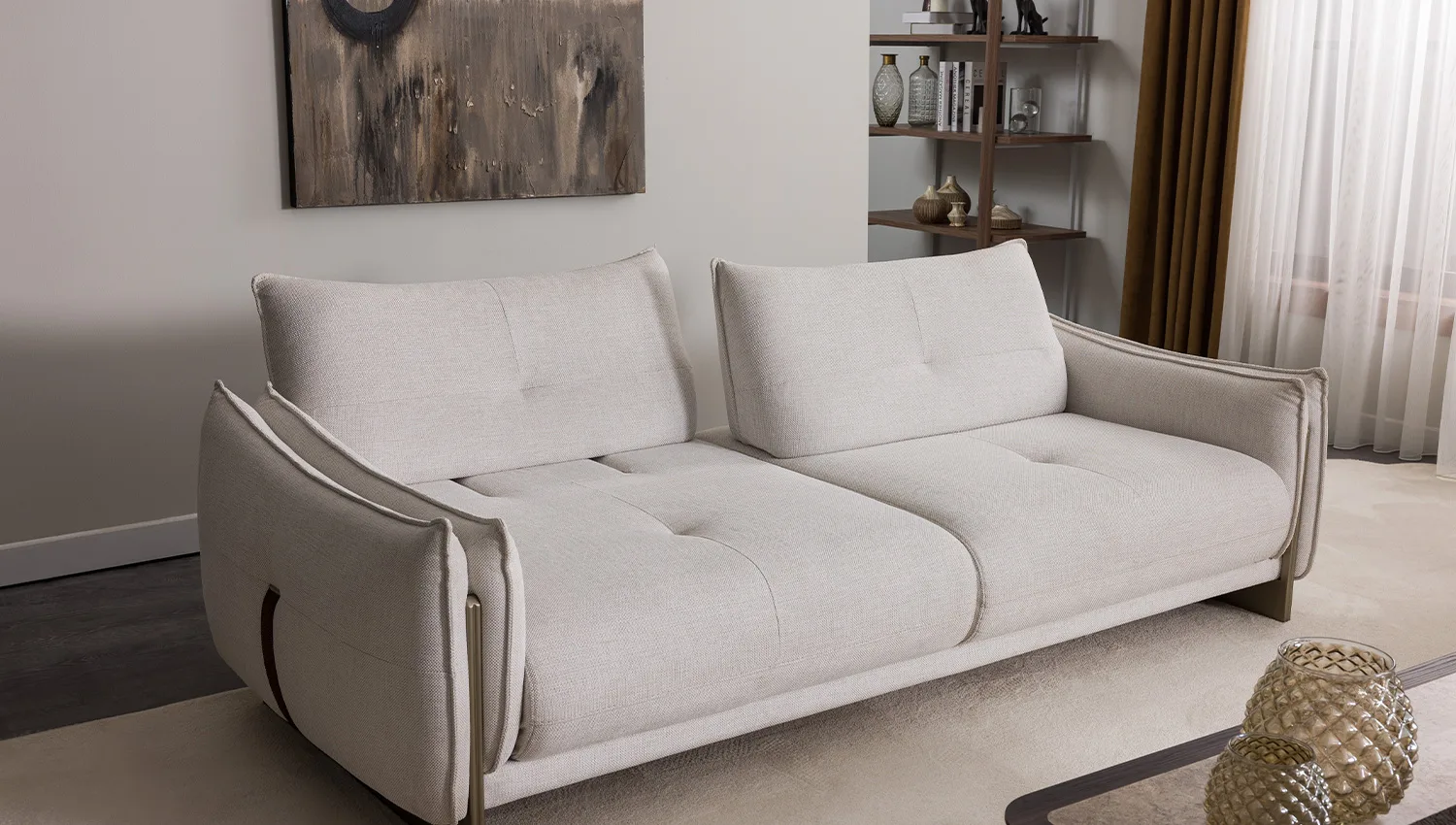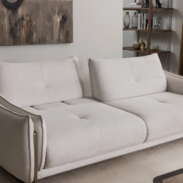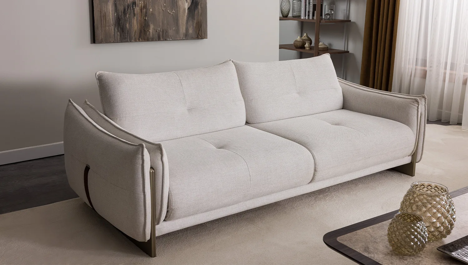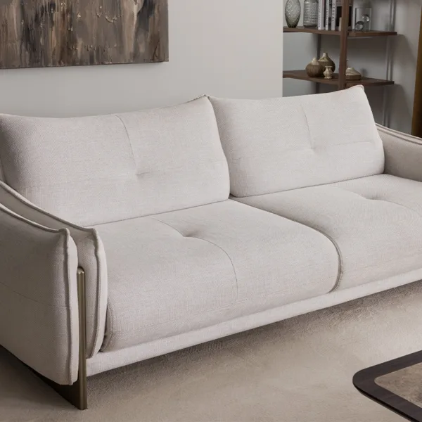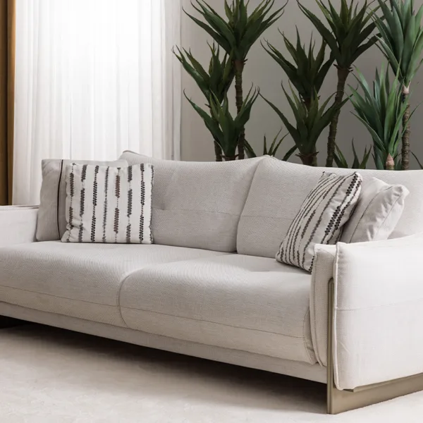 تم تصنيع الهيكل من خشب الزان الطبيعي المعروف بقوته ومتانته، ما يضمن لك سنوات طويلة من الاستخدام دون تأثر بالجودة. أما التنجيد، فقد اختير بعناية ليكون من قماش بيج ناعم الملمس، سهل التنظيف، ومقاوم للتآكل، مما يجعله خيارًا مثاليًا للعائلات والمساحات اليومية.