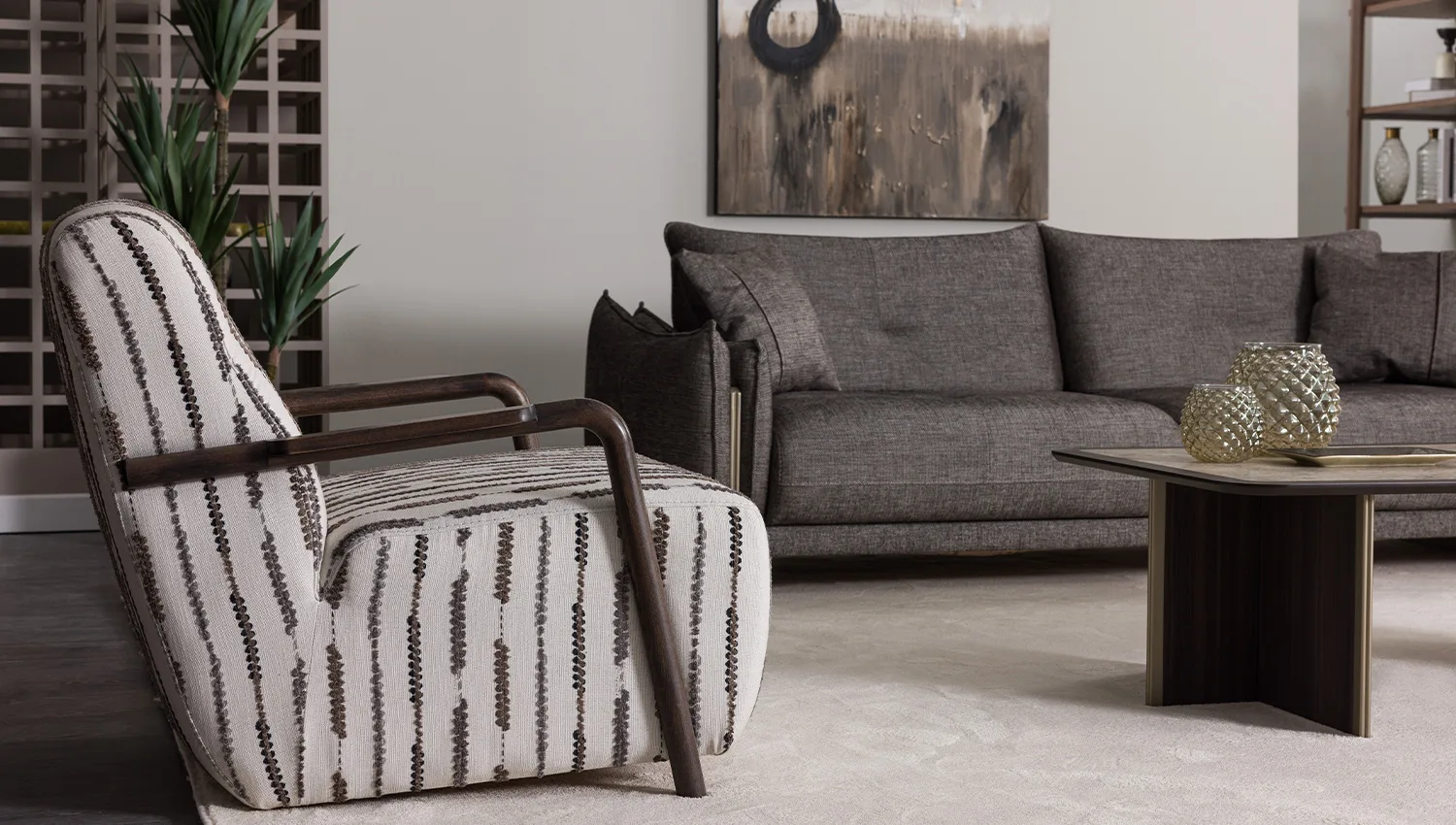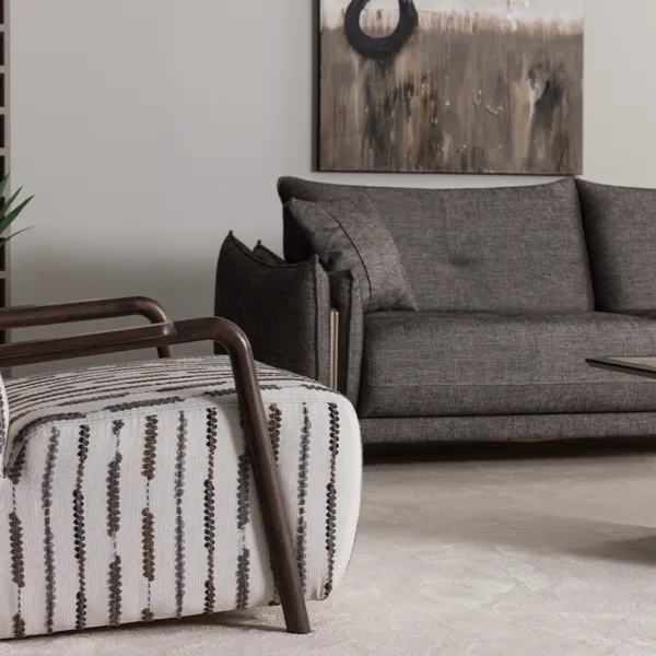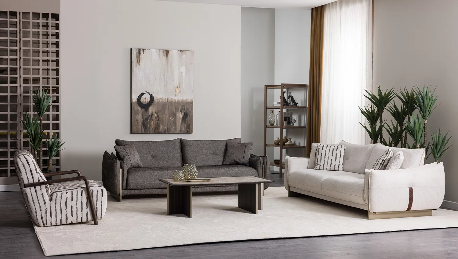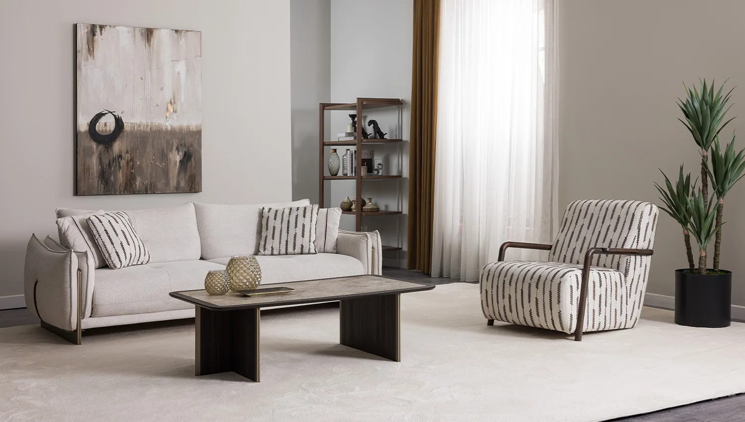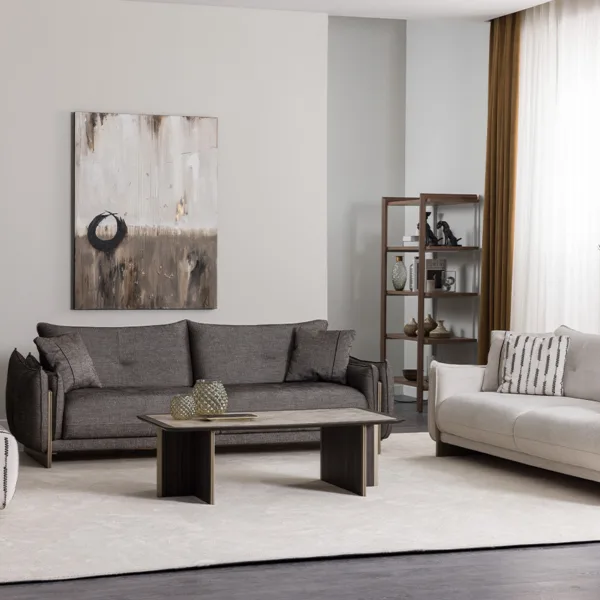 يمكن تنسيق هذا الطقم بسهولة في غرف المعيشة الواسعة أو المتوسطة، كما يناسب صالات الاستقبال ذات الطابع العصري.