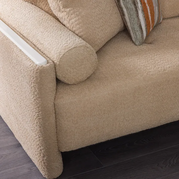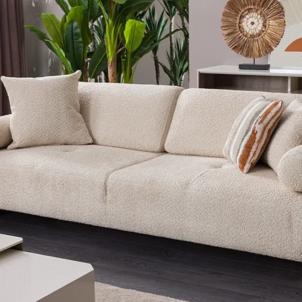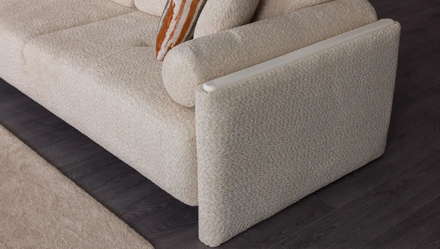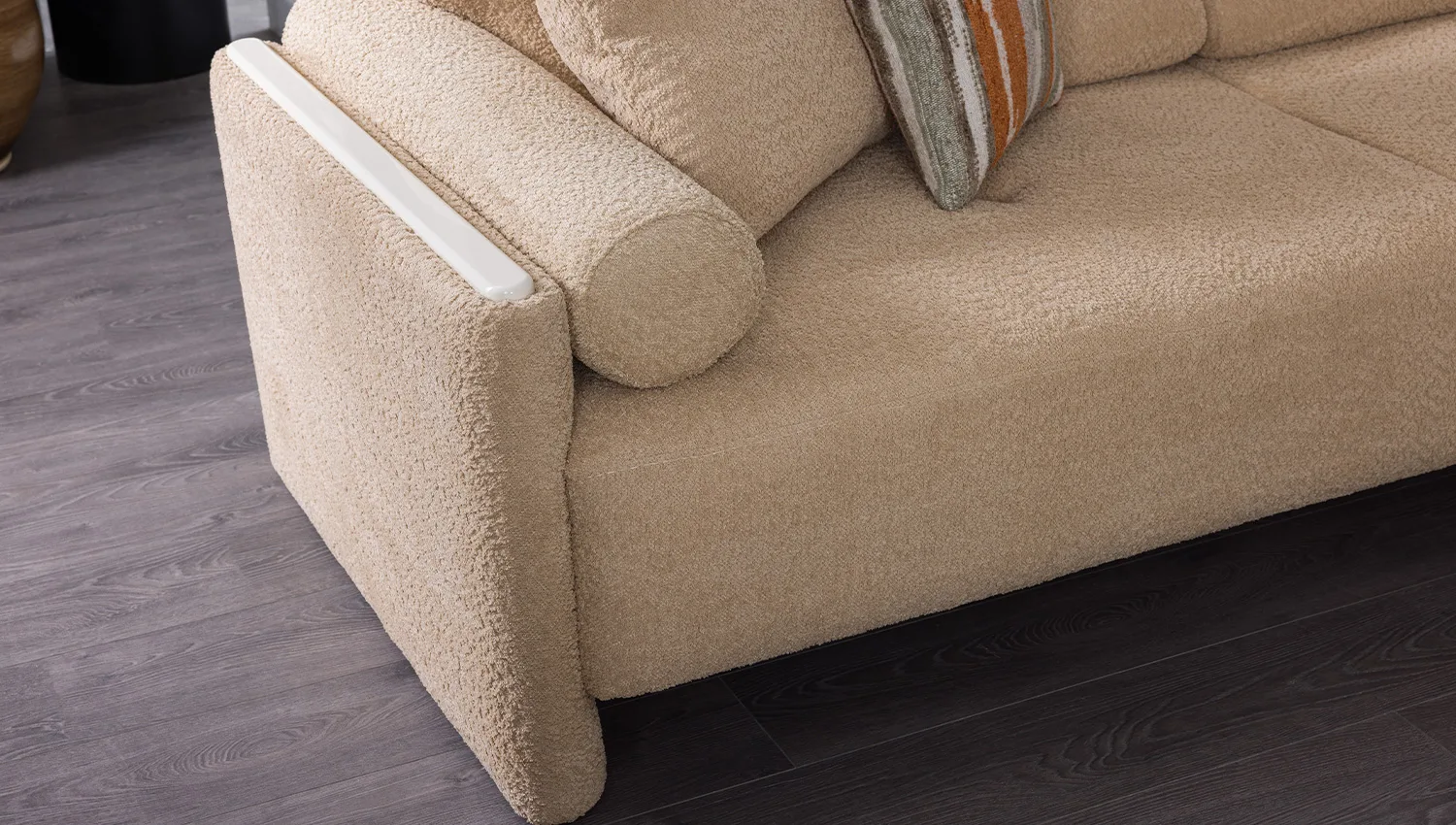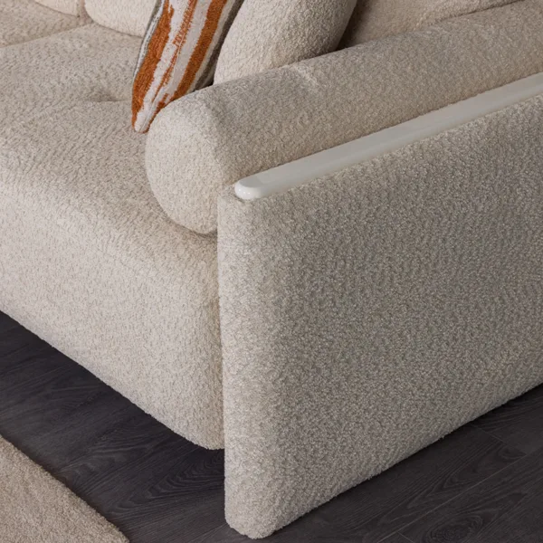 يعتمد الأنتريه على هيكل متين مصنوع من خشب الزان المعروف بصلابته ومقاومته العالية للتلف، مما يضمن استدامة المنتج لسنوات طويلة. ويكتمل التصميم بقماش ناعم وفاخر، مختار بعناية ليمنحك إحساسًا استثنائيًا بالراحة أثناء الجلوس مع لمسة جمالية راقية.