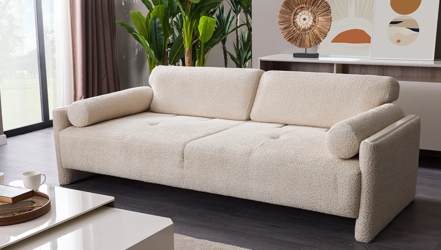 طقم أنتريه ميرا الفاخر بتصميم مودرن أنيق مصنوع من خشب الزان المتين، باللون البيج الجذاب، مثالي لغرف المعيشة الراقية. يجمع بين الراحة والفخامة، ويضفي لمسة عصرية دافئة على ديكور منزلك.