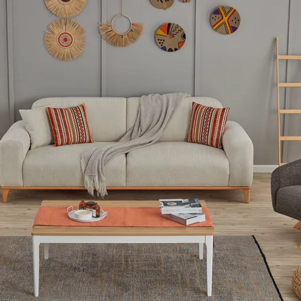 صُنع طقم الأنتريه هذا بعناية فائقة من خشب الزان الطبيعي، المعروف بمتانته وقوته، ليمنحك قطعة أثاث تدوم لسنوات دون أن تفقد رونقها. تم تغليفه بقماش الكتان الفاخر، الذي يجمع بين النعومة والمظهر العصري، ويتوفر بلونين أنيقين: رمادي فاتح ورمادي غامق، مما يضفي طابعًا هادئًا ومريحًا يناسب معظم أنماط الديكور الداخلي.