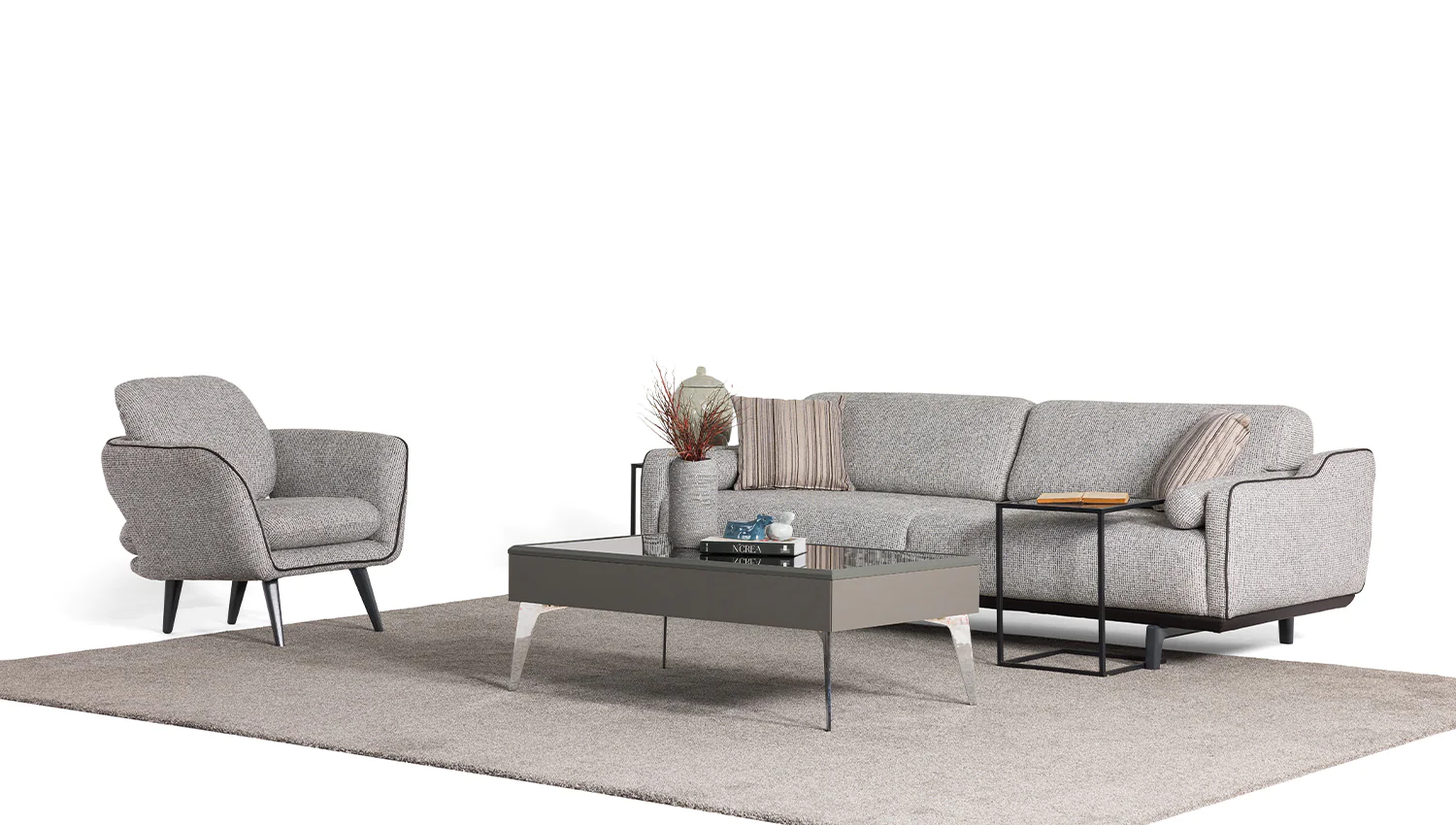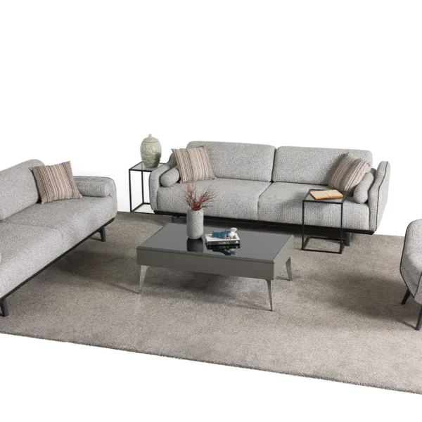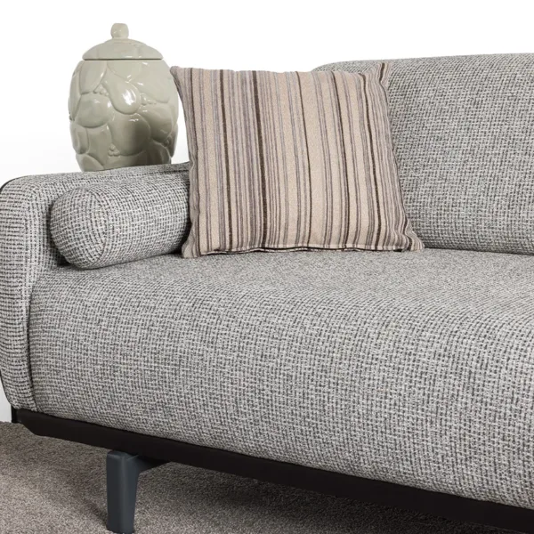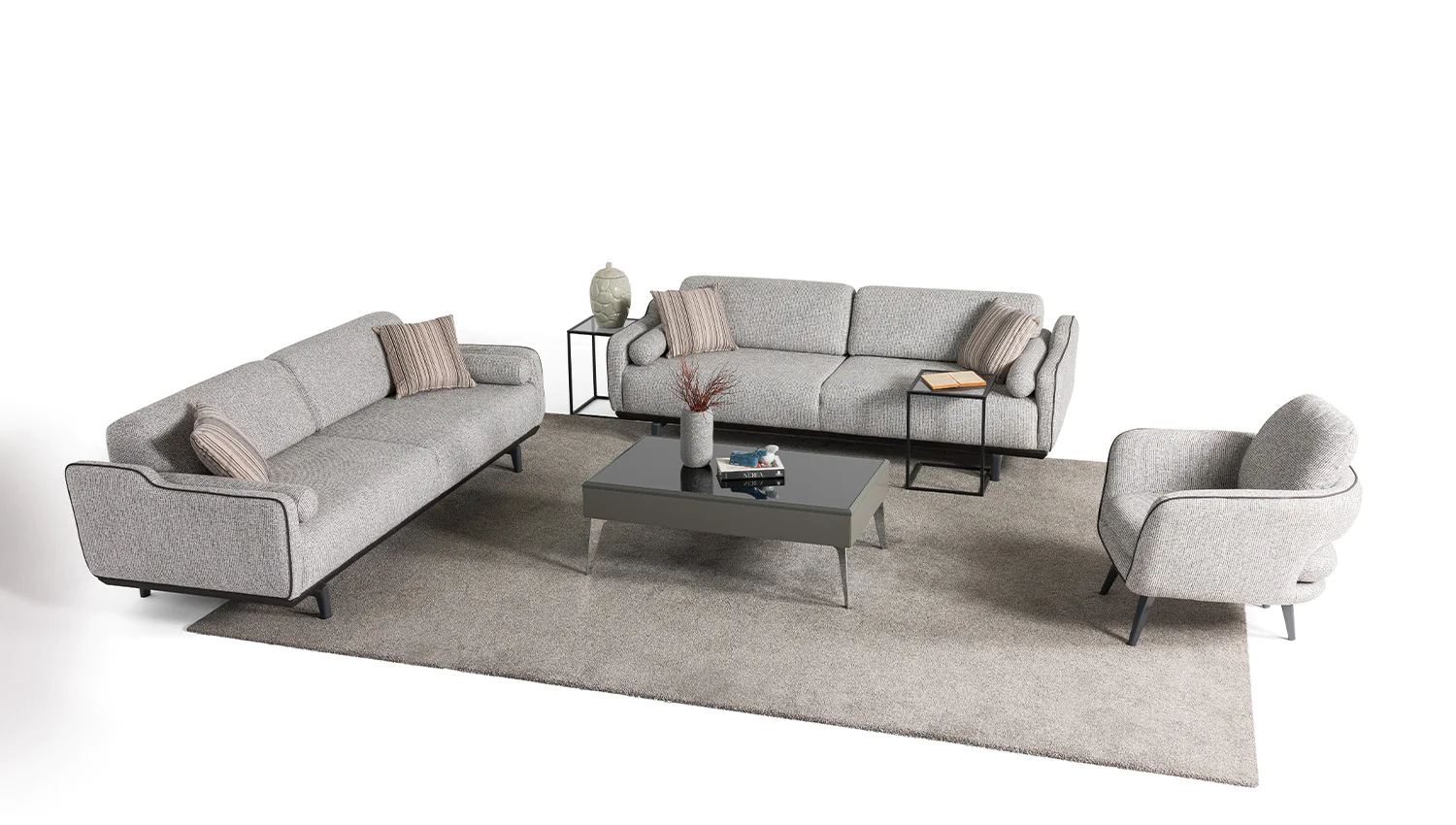 صُمم هذا الطقم بعناية ليتناغم مع أسلوب الحياة العصري، حيث يتميز بخطوطه النظيفة ولمساته الأنيقة. يتكون الطقم من كنبتين وفوتيه واحد، ما يجعله خيارًا مثاليًا لغرف المعيشة المتوسطة والكبيرة. تم اختيار خامات عالية الجودة بعناية، تبدأ من الهيكل المتين المصنوع من خشب الزان الطبيعي المعروف بصلابته ومتانته، وصولًا إلى الكسوة الخارجية من قماش الكتان الرمادي الفاتح، الذي يتميز بمقاومته للتآكل وسهولة تنظيفه، مع الحفاظ على مظهر أنيق وطبيعي.