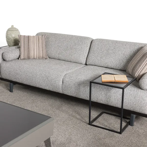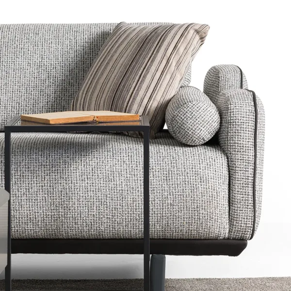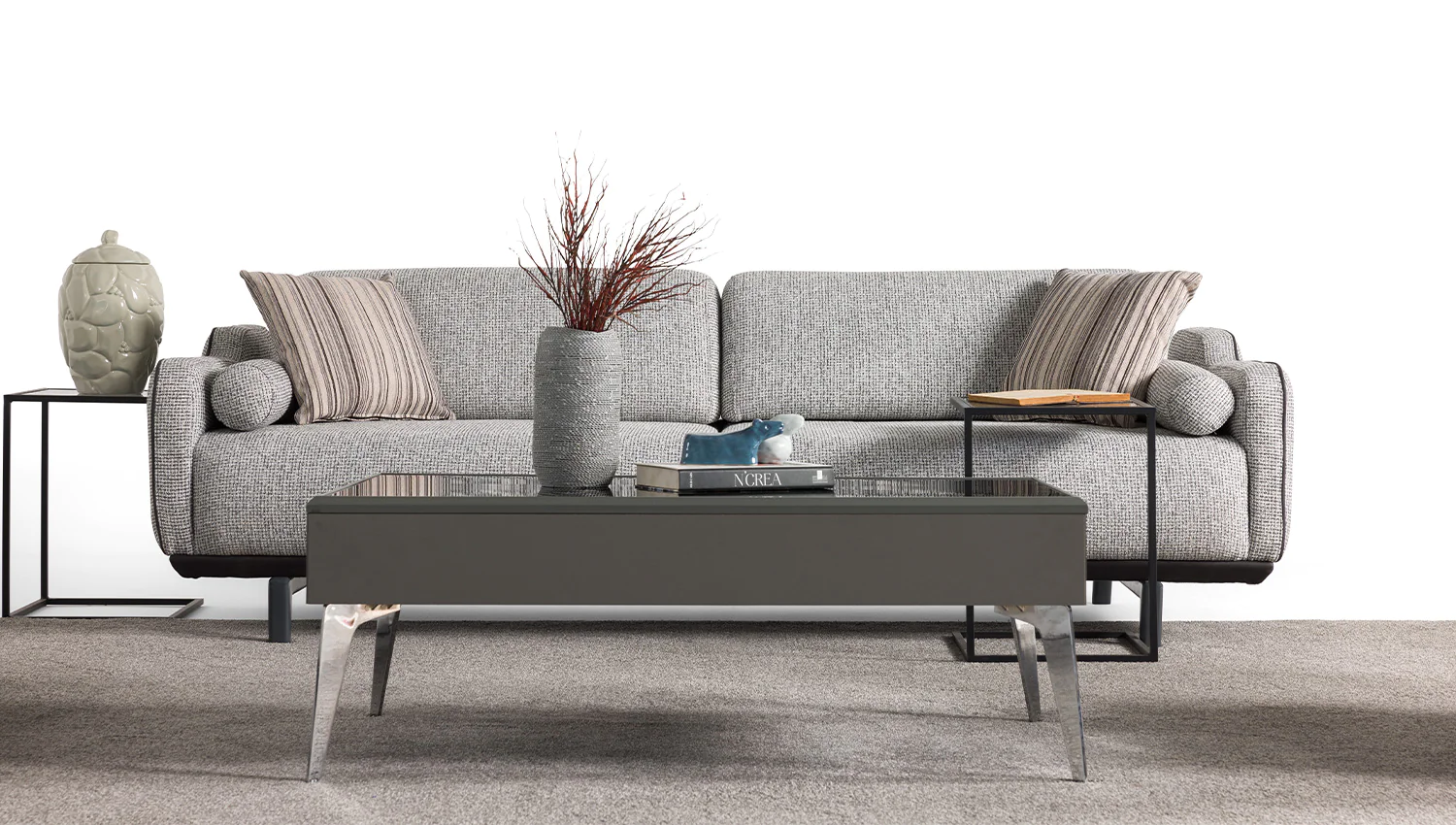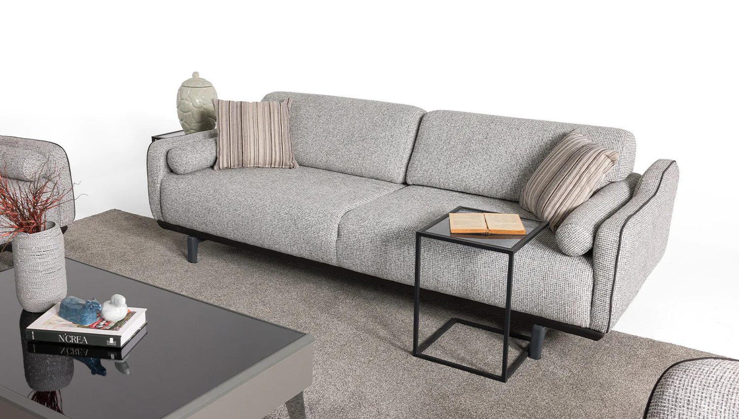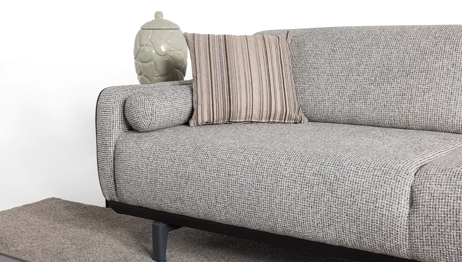 صُمم هذا الطقم بعناية ليتناغم مع أسلوب الحياة العصري، حيث يتميز بخطوطه النظيفة ولمساته الأنيقة. يتكون الطقم من كنبتين وفوتيه واحد، ما يجعله خيارًا مثاليًا لغرف المعيشة المتوسطة والكبيرة. تم اختيار خامات عالية الجودة بعناية، تبدأ من الهيكل المتين المصنوع من خشب الزان الطبيعي المعروف بصلابته ومتانته، وصولًا إلى الكسوة الخارجية من قماش الكتان الرمادي الفاتح، الذي يتميز بمقاومته للتآكل وسهولة تنظيفه، مع الحفاظ على مظهر أنيق وطبيعي.