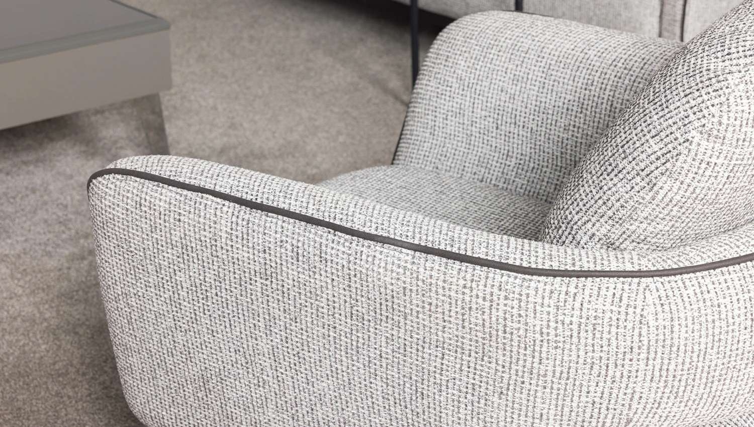 تنجيد فاخر باستخدام قماش كتان رمادي مقاوم للبقع وسهل التنظيف.