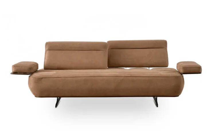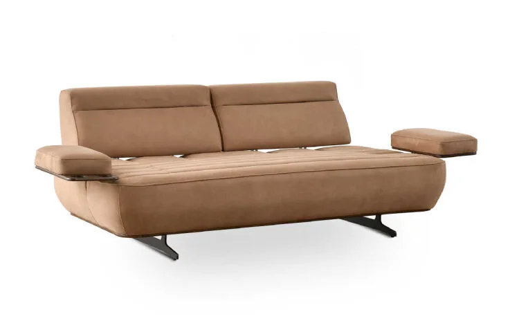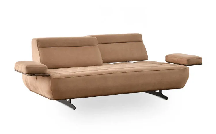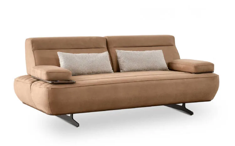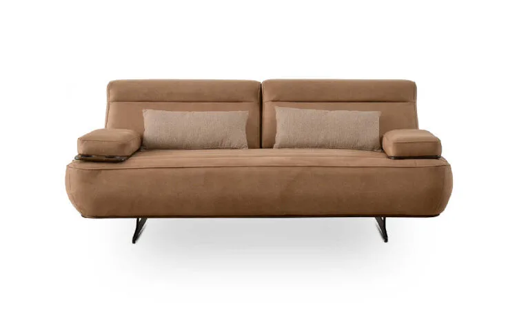 تم تغليف الأريكة بقماش ناعم وعصري بلون بني دافئ، ما يجعلها تتماشى بسهولة مع معظم أنماط الديكور الداخلي. أما التصميم فهو مودرن بسيط بخطوط نظيفة ولمسات فنية دقيقة تضيف للمنتج قيمة جمالية دون تعقيد.