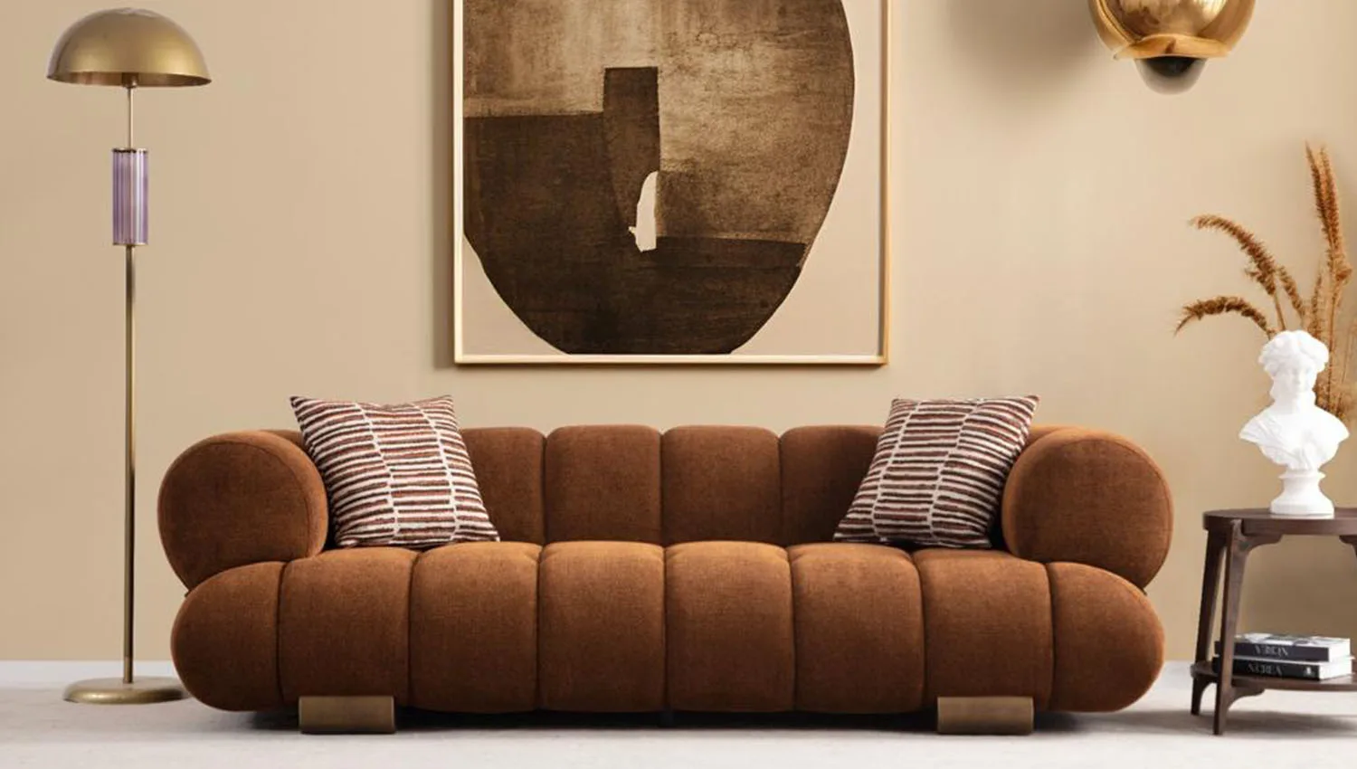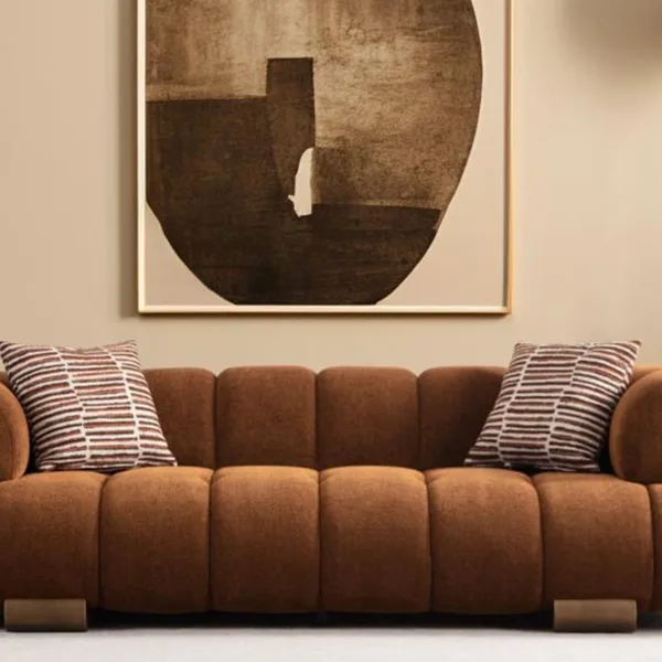 كسوة قماشية فاخرة بألوان أنيقة (بني غامق وبيج فاتح).