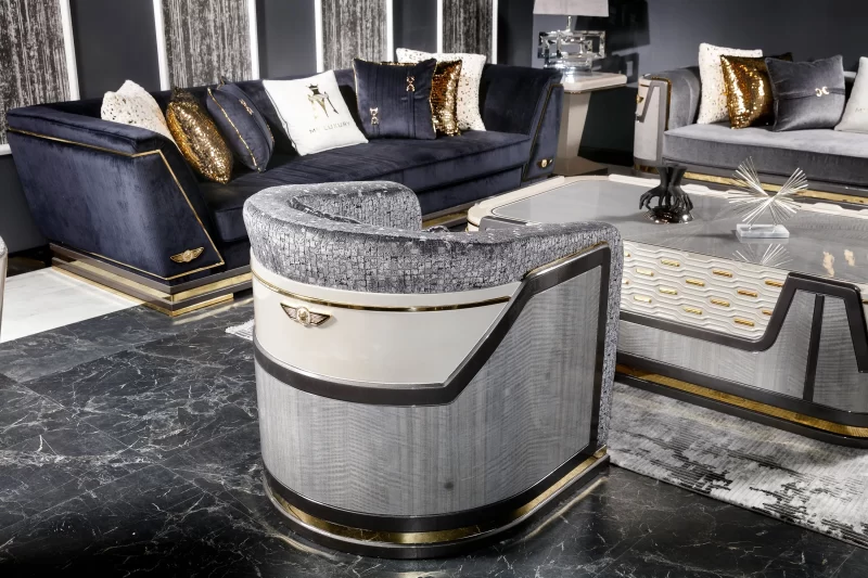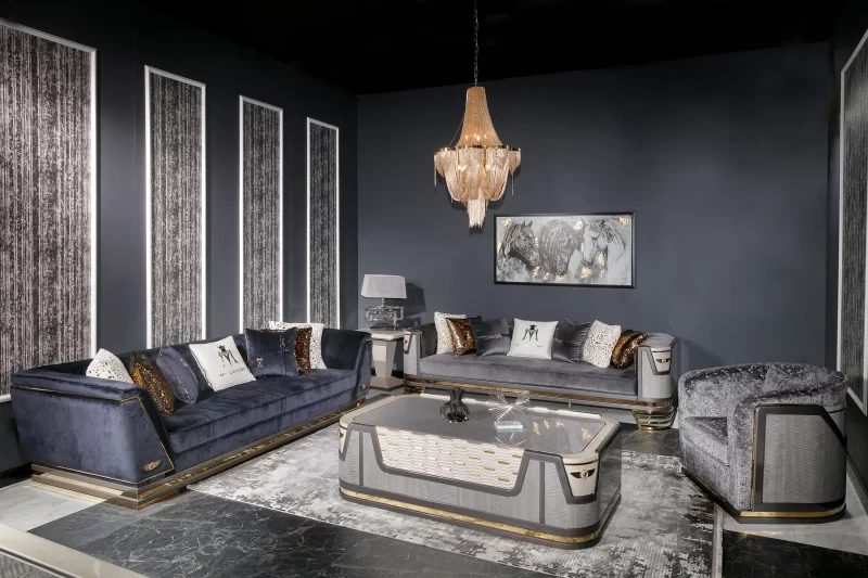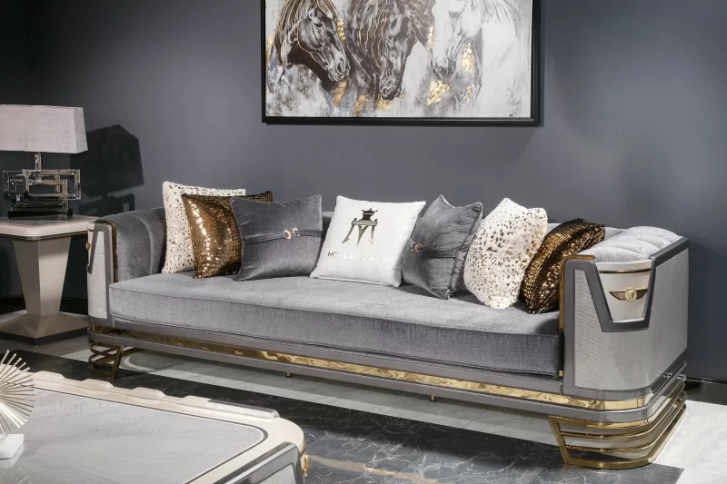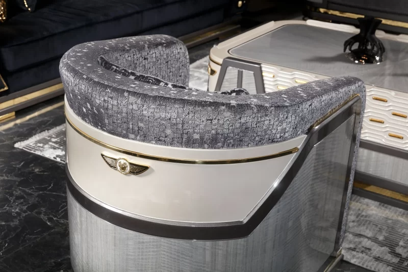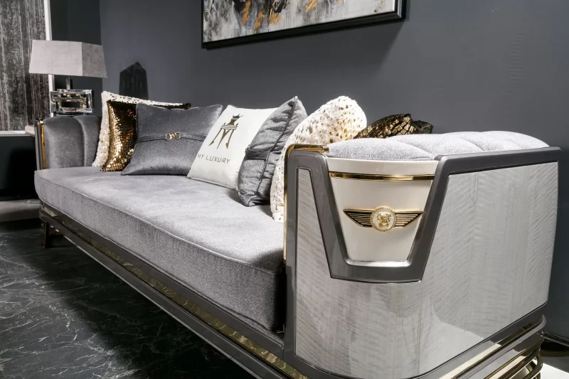 تم تصميم هذا الأنتريه ليكون مزيجاً مثالياً بين الطابع المودرن العصري واللمسات الكلاسيكية الراقية. صُنع الهيكل من خشب الزان الطبيعي المعروف بقوته ومتانته، مما يضمن عمراً طويلاً وقدرة عالية على التحمل. أما التنجيد فقد تم باستخدام قماش قطيفة رمادي فاخر يمنح إحساساً بالنعومة والفخامة في آن واحد. اللون الرمادي المحايد يجعله خياراً عملياً وسهل التنسيق مع مختلف أنماط الديكور الداخلي.