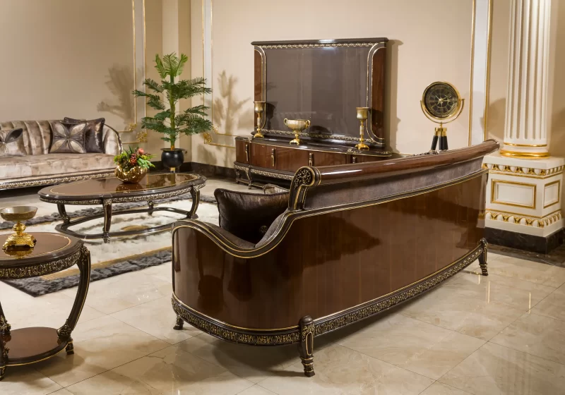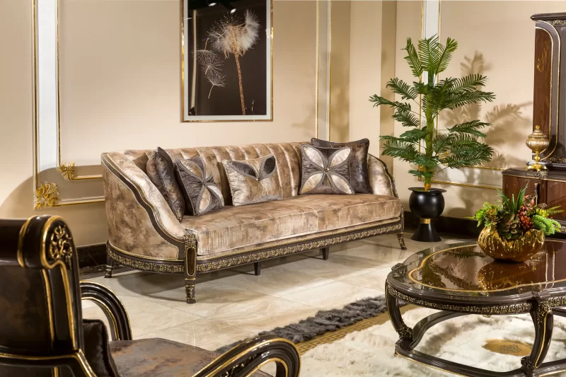 الجمع بين النمط الكلاسيكي الفخم وخطوط التصميم المودرن يمنح الطقم توازناً مثالياً يلائم مختلف الديكورات الداخلية، سواء كانت تقليدية أو عصرية.