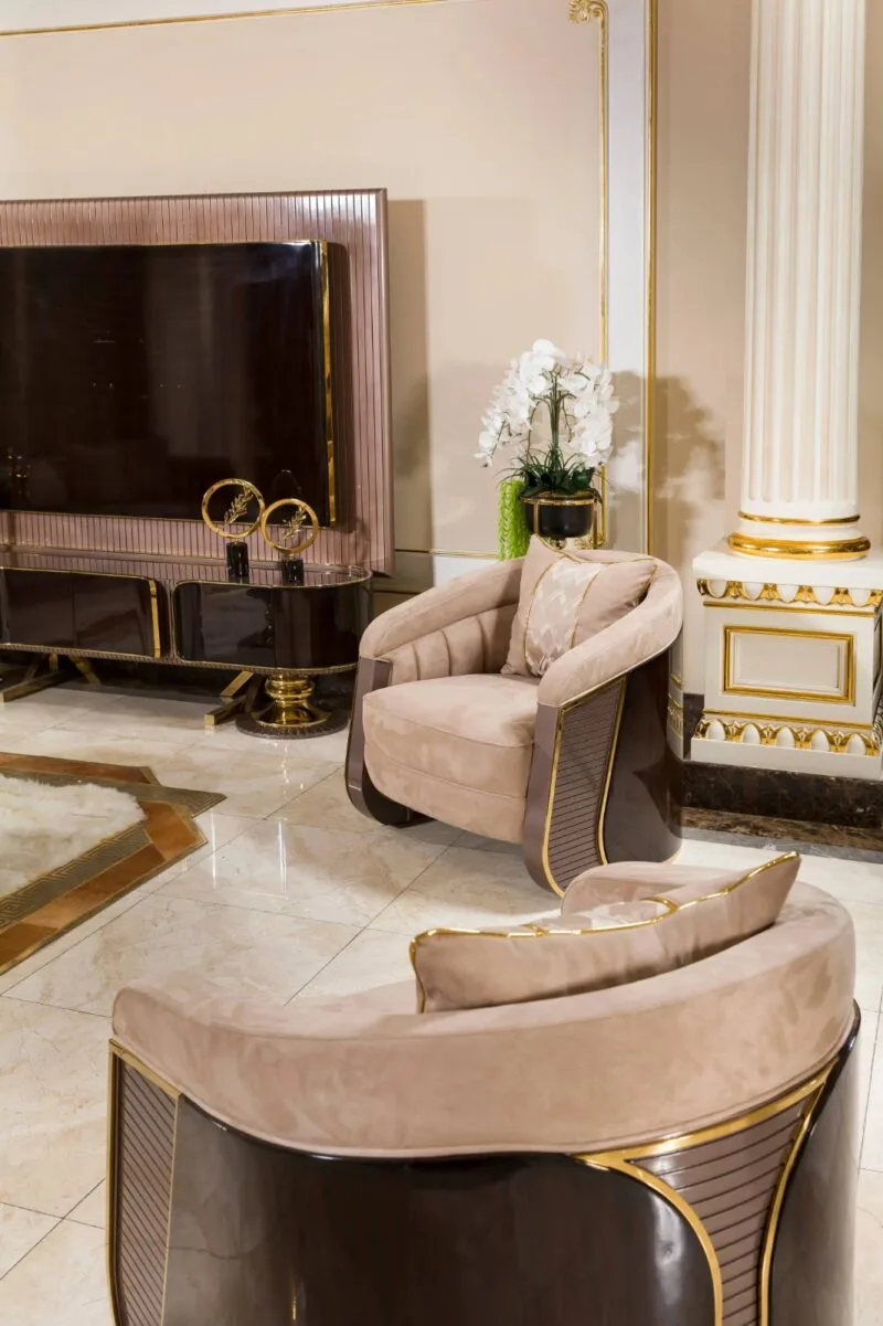الجودة هنا لا تقف فقط عند المواد، بل تشمل أدق تفاصيل التصميم؛ من تنجيد الكنب والفوتيه إلى دقة الخياطة والانحناءات الانسيابية التي تمنح المنتج شكله المميز.