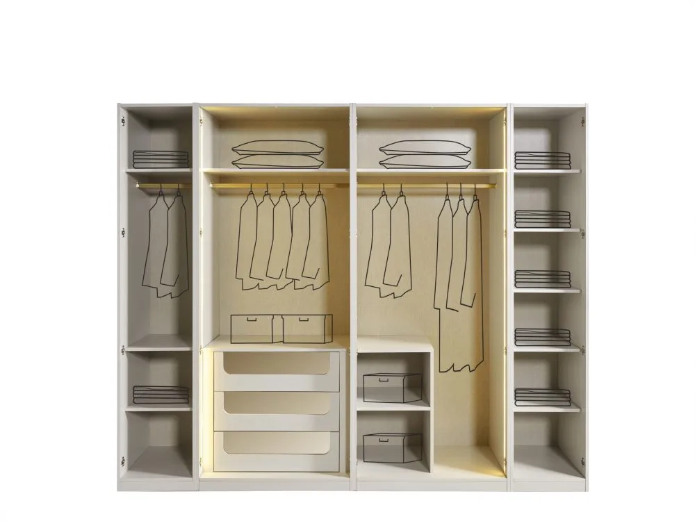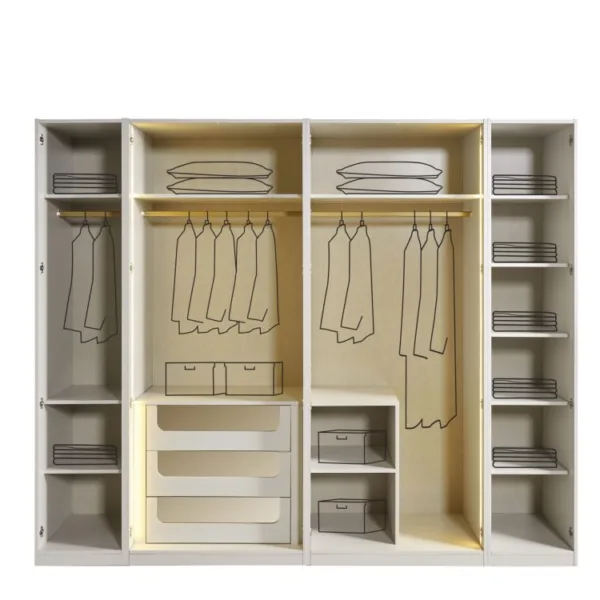 • مساحات تخزين واسعة في الدولاب والتسريحة لتلبية كافة احتياجاتك.