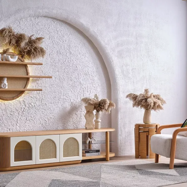 تتميز وحدة تلفاز بيجونفيل بخطوطها النظيفة وأسلوبها المعاصر، ما يجعلها مناسبة لجميع أنواع الديكورات الداخلية، سواء الكلاسيكية أو الحديثة.