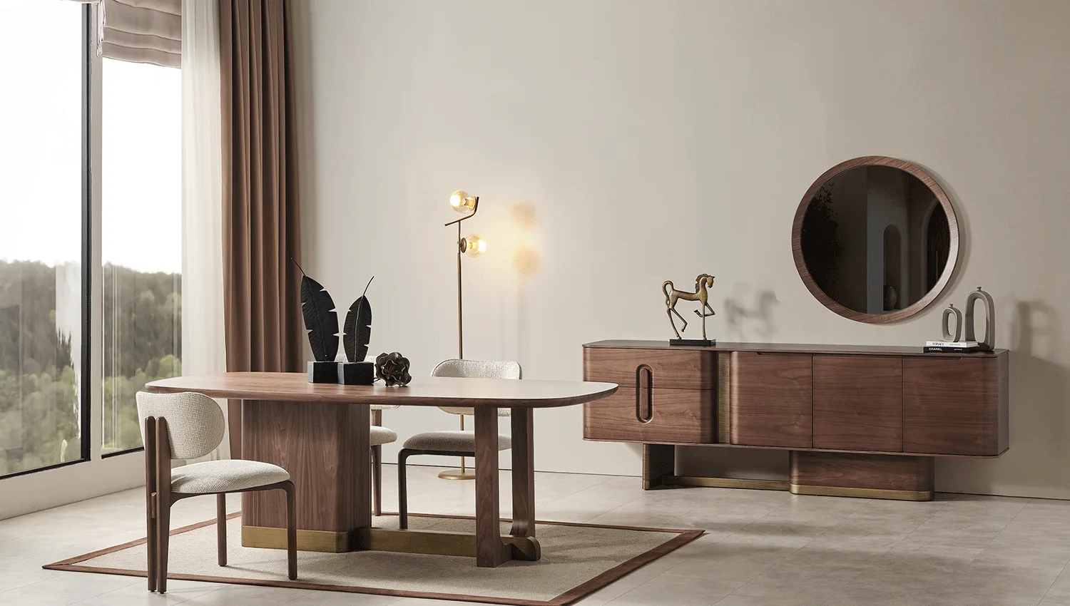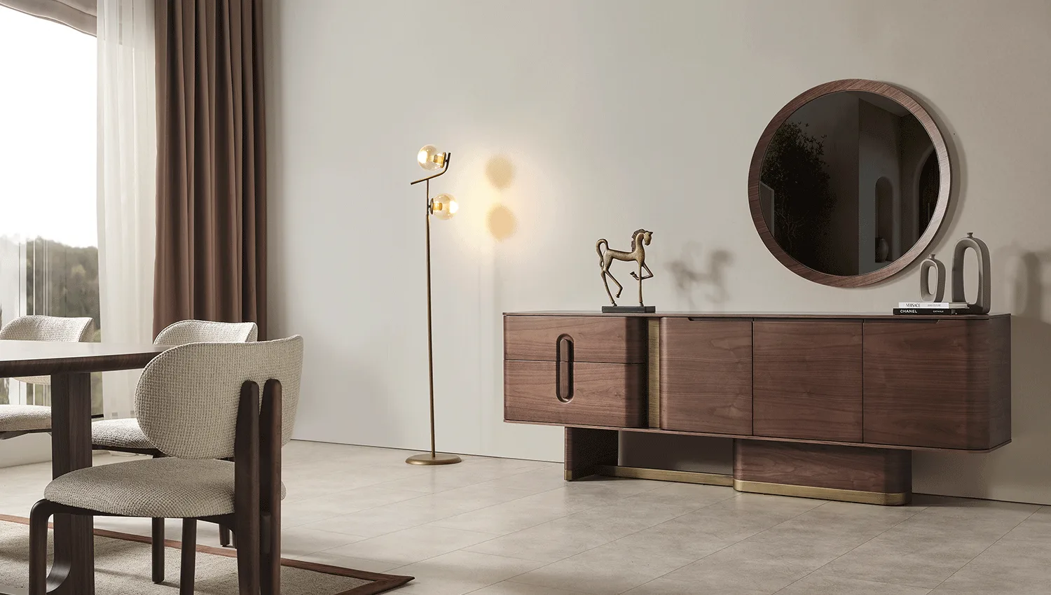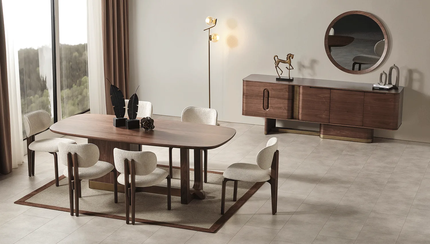 • بوفيه واسع: عملي لتخزين أدوات المائدة مع تصميم متناسق مع باقي القطع.